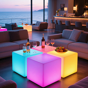 Whether you want a chic lounge vibe or a playful, colorful atmosphere, our LED Glow Cubes adapt to your vision. Pair them with our LED centerpieces or floating LED orbs / spheres. For an amazing colorful look and feel.